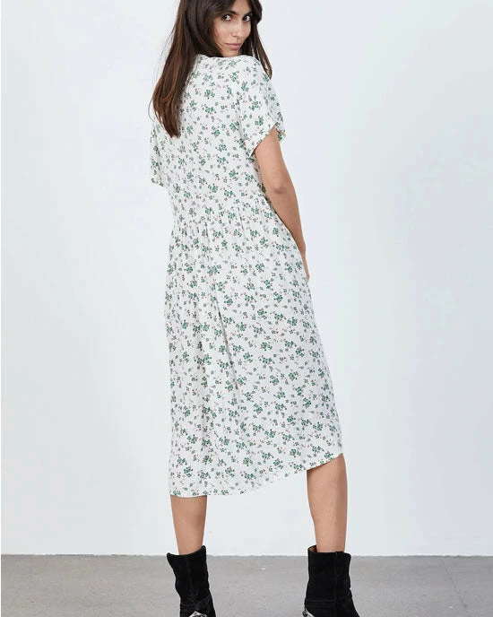 Your favorite midi-length shirt dress is here. Crafted in a soft and comfy quality, this dress will not let you down. It has short sleeves with button opening all the way down front. We love the front pockets on the sides for the feminin and underplayed casual look. The dress is designed in a regular fit in an airy skirt. Whether you wear it alone or combine it in a layered look you will feel amazing in this design and print. Polyester Round neck Side pockets Button front Machine wash Quality: 100% FSC Viscose / Lining: 100% Cotton Browse our complete Lollys Laundry collection Kamilla Byriel is the woman behind Lollys Laundry. She is a renowned Danish designer, who has already left her mark on other Danish brands. In 2007 Kamilla launched Lollys Laundry, where she creates the styles, that she loves – always with a focus on ”Easy to wear with casual coolness”.