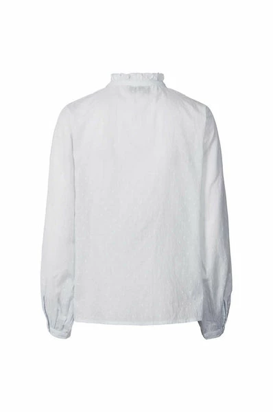 A classic romantic style blouse from Lollys Laundry, the Balu Shirt is an everyday staple made from a lightweight cotton. Pleats decorate the front and a gentle frill around the neckline adds a little femininity without being over done. The regular fit makes it easy to layer under spring knits! – Pleats on the front – Subtle check pattern – Regular fit – Frill detail on neckline XS S M L Chest pit to pit (cm) 48 50 52 54 Sleeve length (cm) 60 60.6 61 61.5 Total length (cm) 60 60 60 60 100% Cotton Wash at 30 on a delicate cycle. Do not tumble dry. Made in India 22111_2051 01