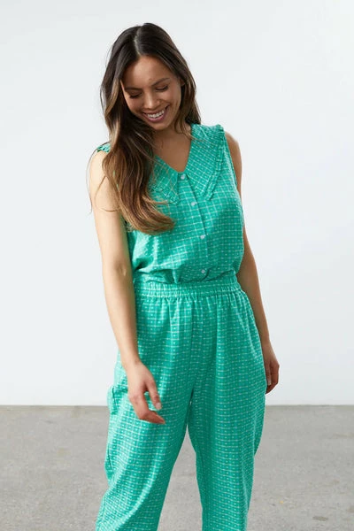 These trousers are designed with both comfort and style in mind. They have narrow legs, side pockets and elastic at the waist. It is a perfect fit especially if you have slightly wider hips. Easily to dress up and down according to your personality, mood and occasion. Regular fit at waist with a bit of a looser fit at legs. Style with the matching Carly Top – Green from Lollys Laundry. Quality: 80% Polyester, 16% Viscose, 4% Elastane