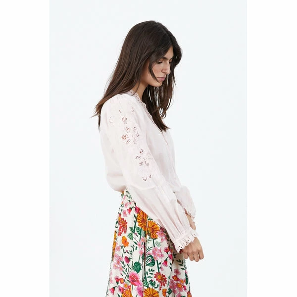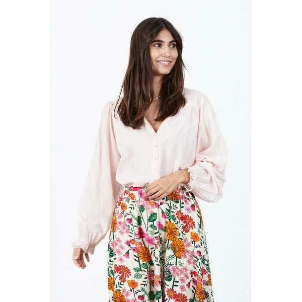 This blouse has the best of both worlds. It is designed in a classic fit with long sleeves, v-neckline and front placket opening. The beautiful details such as the elastic and frill at sleeves, the embroidery and the dotted structure makes it something special. It is crafted from a soft material, and you can style it to anything and look devine while feeling comfortable. Quality: 100% Cotton