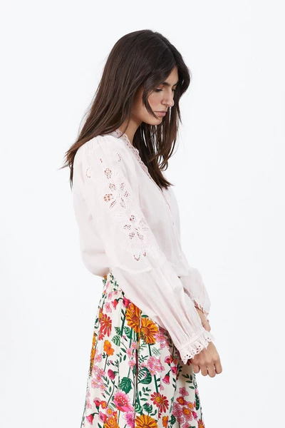 This blouse from Lolly’s Laundry has the best of both worlds. It is designed in a classic fit with long sleeves, v-neckline and front placket opening. The beautiful details such as the elastic and frill on the sleeves, the embroidery and the dotted structure makes it something special. It is crafted from a soft material, and you can style it to anything and look divine while feeling comfortable. 100% Cotton—MEASUREMENTS:XS: Chest 94 cm / Length 60 cmS: Chest 98 cm / Length 61 cmM: Chest 102 cm / Length 62 cmL: Chest 106 cm / Length 63 cmXL: Chest 110 cm / Length 64 cm