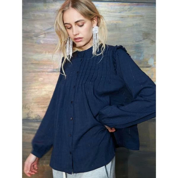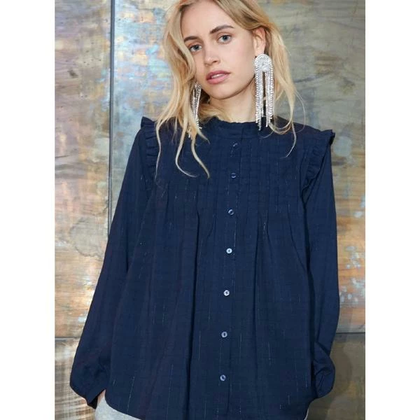We absolutely adore this Lollys Laundry Dawn shirt. It’s the perfect shirt for winter celebrations thanks to the subtle lurex stripe. It has pretty pleats at the top to create a loose shape and frills at the collar and shoulders. The shirt has 3/4 sleeves. Composition: 47% Polyester, 40% Viscose, 11% Polyamide, 2% Elastane Care: Machine wash cold MEASUREMENTS: XS: Chest 94 cm / Front length 62 cm / Back length 58 cm S: Chest 98 cm / Front length 63 cm / Back length 59 cm M: Chest 102 cm / Front length 64 cm / Back length 60 cm L: Chest 106 cm / Front length 65 cm / Back length 61 cm XL: Chest 110 cm / Front length 66 cm / Back length 62 cm