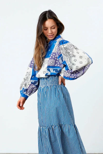 This shirt is designed in a classic fit with delicate details such as gatherings at sleeve caps and long sleeves with a bit of volume and cuffs. We love how this piece is the perfect everyday shirt, but with subtle twists. The shirt has a classic collar with a front placket opening and buttons. Style with the matching Bao Shorts – Blue Multi from Lollys Laundry. Quality: 100% Ecovero Viscose
