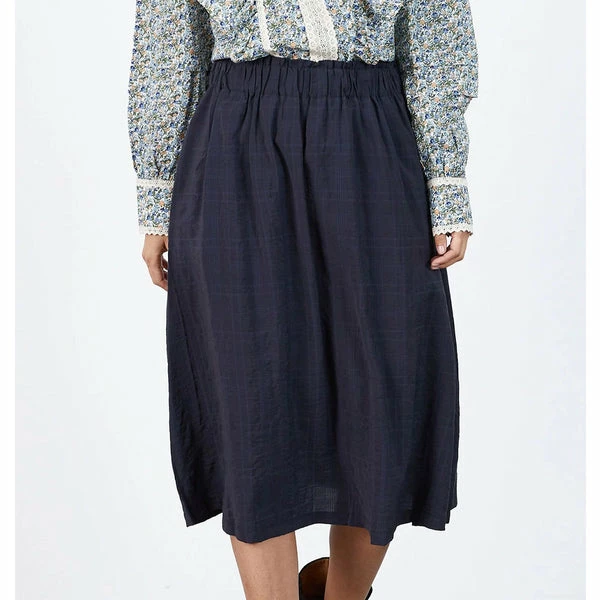 If you are searching for the perfect midi skirt then look no further! We absolutely adore the relaxed fit and fabric of this skirt and the fact that it is a plain navy means it should go with almost every top in our wardrobes. The skirt is designed in three panels and has an elasticated waist. MEASUREMENTS: XS: Waist relaxed 64 cm / Waist stretched 90 cm / Length 71 cm S: Waist relaxed 68 cm / Waist stretched 94 cm / Length 72 cm M: Waist relaxed 72 cm / Waist stretched 98 cm / Length 73 cm L: Waist relaxed 76 cm / Waist stretched 102 cm / Length 74 cm XL: Waist relaxed 80 cm / Waist stretched 106 cm / Length 75 cm Style no. 22116_4008 Quality: 72% Cotton, 28% Polyamid