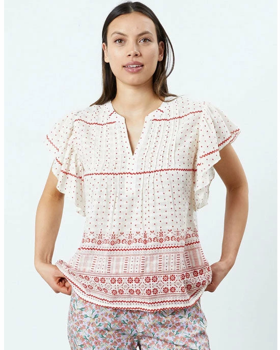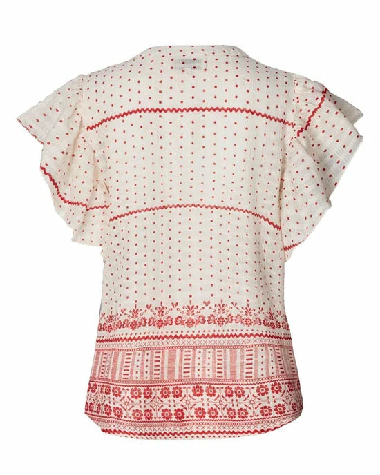 The white Isabel Top features a delicate red dot print and a feminine floral pattern. We adore this easy style with the beautiful pleatings on the chest and short sleeves. Taking something classic and giving it a unique twist is what Lollys Laundry is all about. It is one centimeter longer to the back than the front and is true to size. 100% Cotton Browse our complete Lollys Laundry collection Lollys Laundry is understated luxury that everyone can afford. The philosophy is to create a brand where the quality and price are woven together, resulting in strong collections that let you style your look up or down, depending on whether you are into classic romanticism or the tough rock chick look. Kamilla Byriel is the woman behind Lollys Laundry. She is a renowed Danish designer, who has already left her mark on other Danish brands. In 2007 Kamilla launched Lollys Laundry, where she creates the styles, that she loves – always with a focus on ”Easy to wear with casual coolness”.
