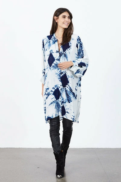 This beautiful long shirt dress or tunic has cute details, such as 3/4 sleeves, small collar and front placket opening with buttons. Use this style to create a loose airy look. The back is longer than the front and the sleeves are voluminous, which makes this piece unique. The fit is regular and the shirt is crafted in a comfortable, soft material. We got you. MEASUREMENTS:XS: Chest 108 cm / Length 92 cm S: Chest 112 cm / Length 93 cm M: Chest 116 cm / Length 94 cm L: Chest 120 cm / Length 95 cm XL: Chest 125 cm / Length 96 cm Style no. 22132_2028Quality: 100% Viscose
