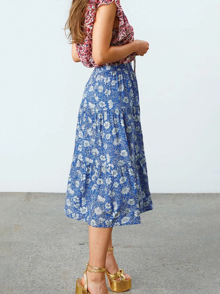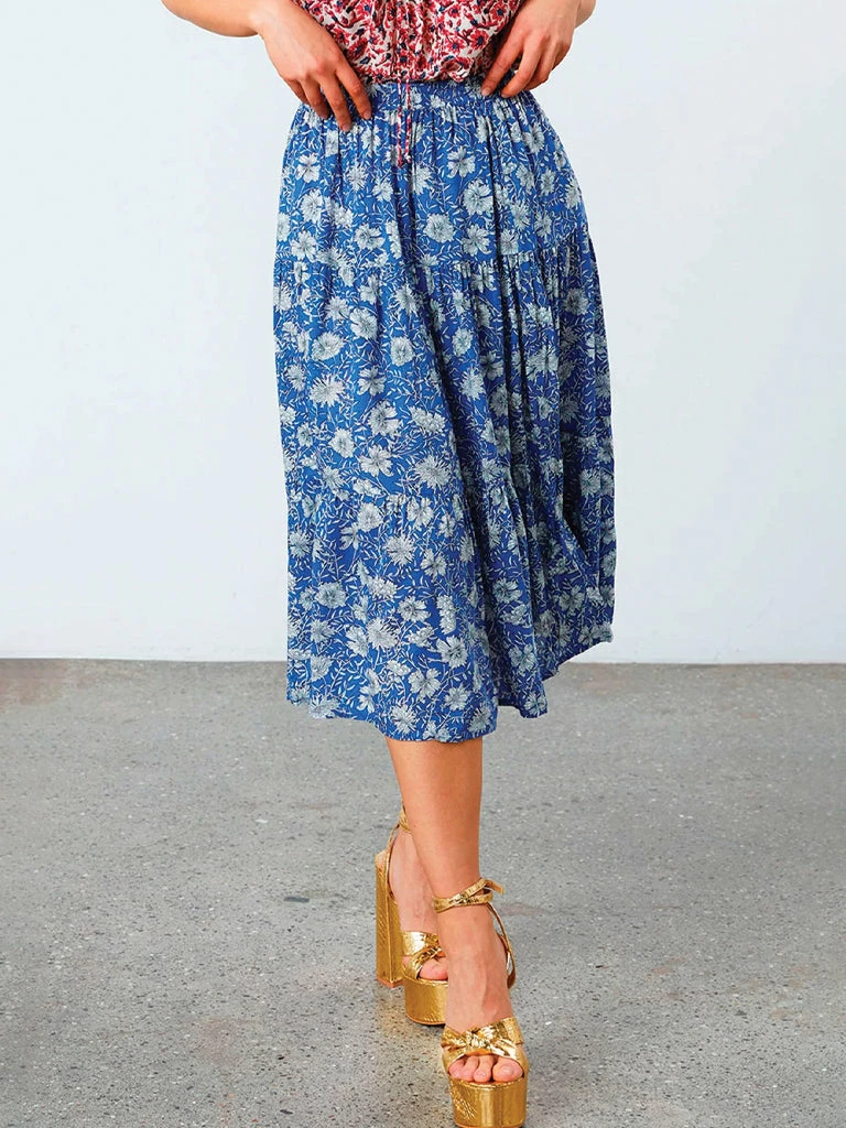 The Morning Skirt from Lolly’s Laundry is a classic piece with tiered detailing creating a flowing silhouette. Crafted from 100% Viscose in a floral print, it is mid length with an elasticated waist. 100% Viscose Elasticated waist Floral print Tiered detailing Below the knee length