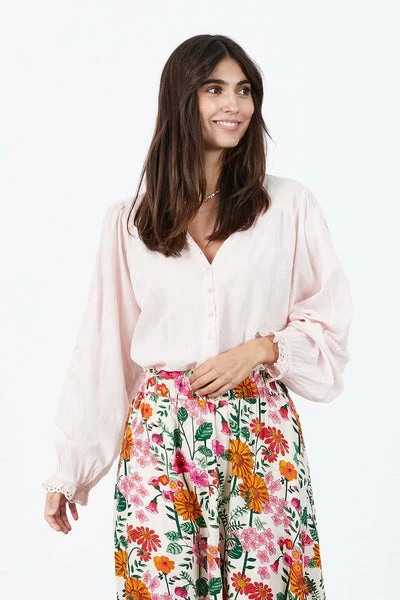This blouse has the best of both worlds. It is designed in a classic fit with long sleeves, v-neckline and front placket opening. The beautiful details such as the elastic and frill at sleeves, the embroidery and the dotted structure makes it something special. It is crafted from a soft material, and you can style it to anything and look devine while feeling comfortable. 100% Cotton