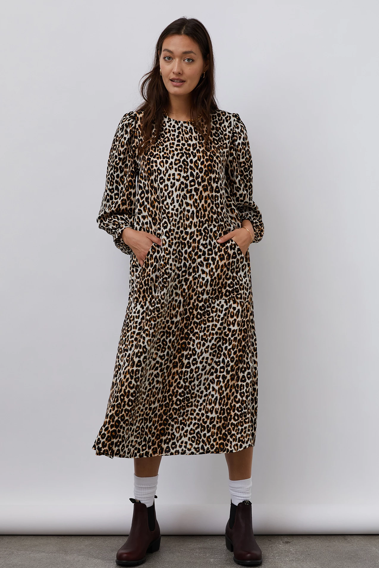 Cut to flatter in an A-line shape, this midi dress by Lolly’s Laundry takes animal print to new heights.