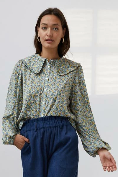 Designed with a regular, casual fit this shirt has amazing details such as the big collar with tiny frills and long sleeves with both volume and elastic at wrists. Delicate puff at shoulders, which makes the perfect combination of a both classic and trendy look. The shirt has front placket opening with buttons and is a bit longer in the back than the front. Easily styled with loose denim jeans for a cool underplayed look. This one comes in a multicoloured flower pattern but we also have this style from Lollys Laundry in a leopard. 40% Recycled Polyester, 60% Polyester