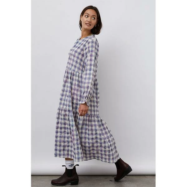 A cool and casual shirt dress in a checked fabric with a beautiful colour combination. It has a relaxed shape with long, loose sleeves with ruffles at the wrist, round neckline and small buttons down to the waist. The dress will look great styled with chunky boots and a winter cardi or tank top. It can be belted if you prefer to define your waist. MEASUREMENTS: XS: Chest 92 cm / Length 130 cm S: Chest 96 cm / Length 131 cm M: Chest 100 cm / Length 132 cm L: Chest 104 cm / Length 133 cm XL: Chest 108 cm / Length 134 cm Style no. 21426_3036 Quality: 100% Cotton Style: Lollys Laundry Natalia Dress