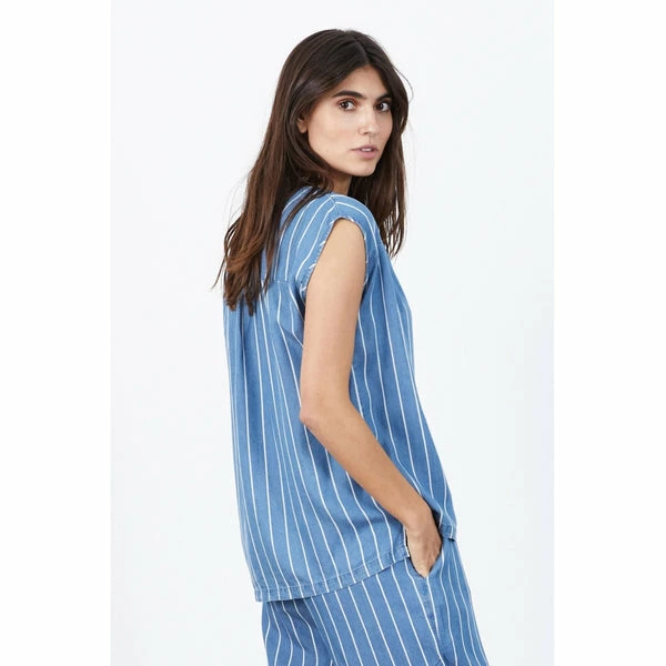 This elegant style is designed with an eye for simplicity combined with fine details. The top is sleeveless, with a v-neck and gatherings above the chest in front. Another detail is the very flattering yoke on the back. The fit is normal. Wear it with the Ted Pants in the same print from Lollys Laundry. Quality: 100% Lyocell