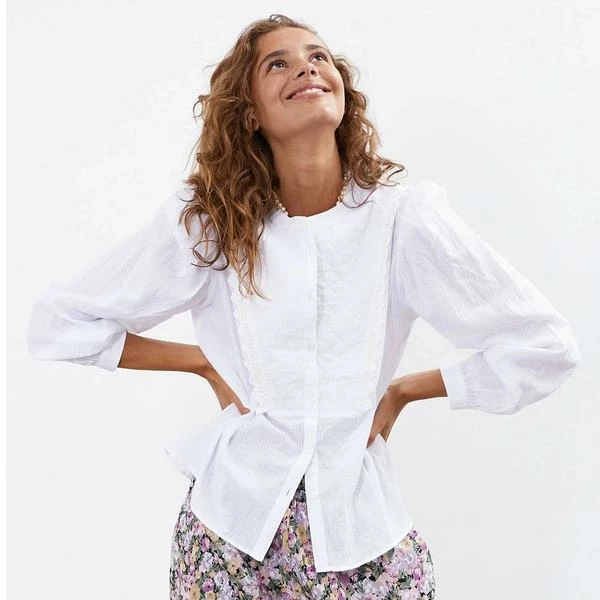 This Lollys Laundry Pearl shirt is crafted in soft pale cream cotton with a beautiful quilted embroidery on the bib and lace details. The shirt shape is a normal fit with a round neckline and button front. Perfect worn loose or tucked in and layered under a fluffy cardigan. Also available in sky blue. Composition: 100% cotton Care: Machine wash Fit: True to size MEASUREMENTS: XS: Chest 96 cm / Length 61 cm S: Chest 100 cm / Length 62 cm M: Chest 104 cm / Length 63 cm L: Chest 108 cm / Length 64 cm XL: Chest 112 cm / Length 65 cm