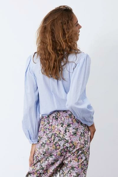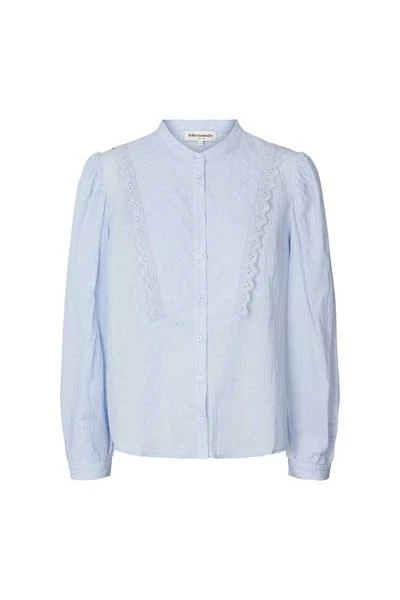 This shirt is crafted in soft cotton with a bit of structure. Designed in a classic shape with a normal fit. It has long sleeves with round neckline including a front placket opening with buttons. Most importantly this shirt has cute details such as the delicate puff at shoulders, the quilt structure at chest together with the lace details. Quality: 100% Cotton