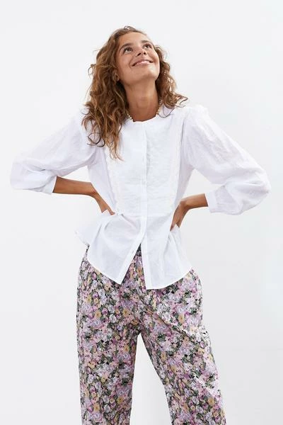 This shirt is crafted in soft cotton with a bit of structure. Designed in a classic shape with a normal fit. It has long sleeves with round neckline including a front placket opening with buttons. Most importantly this shirt has cute details such as the delicate puff at shoulders, the quilt structure at chest together with the lace details. MEASUREMENTS: XS: Chest 96 cm / Length 61 cm S: Chest 100 cm / Length 62 cm M: Chest 104 cm / Length 63 cm L: Chest 108 cm / Length 64 cm XL: Chest 112 cm / Length 65 cm Style no. 21502_2001 Quality: 100% Cotton 100% cotton