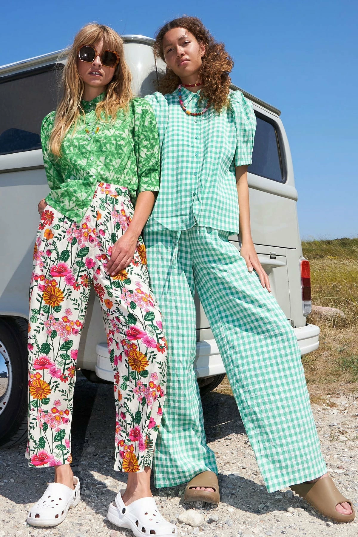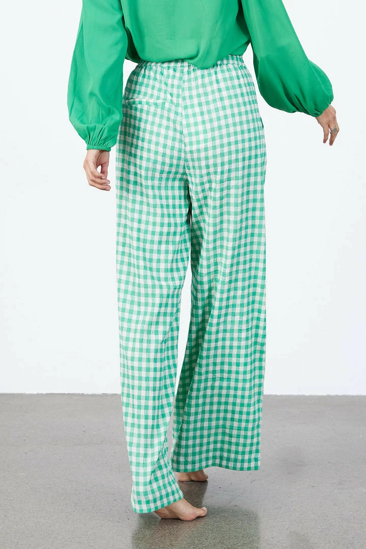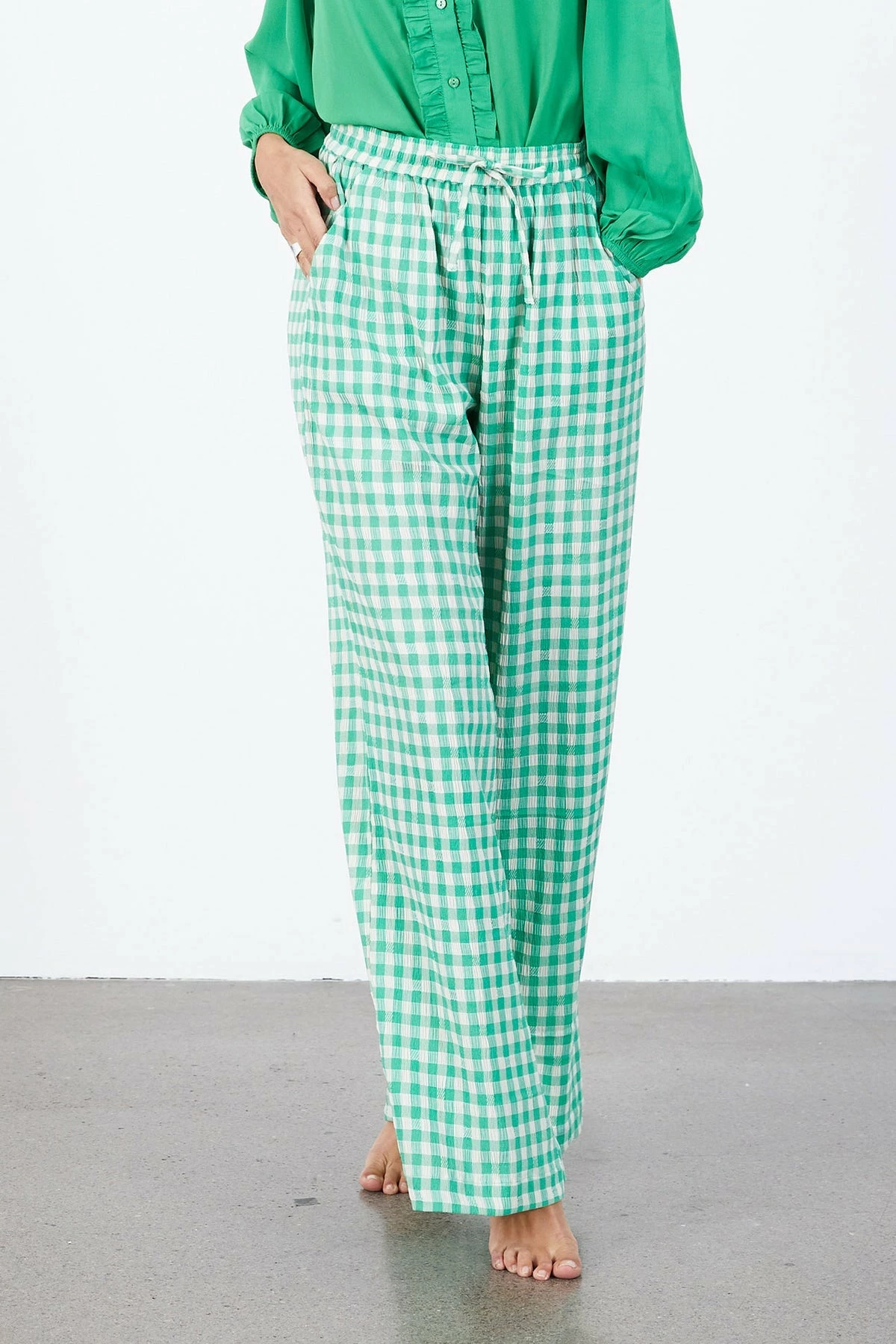 These pants have a cool casual look with a long length and wide fit. Use them with a beautiful top to dress them up, or style them with a basic t-shirt and sneakers for a more relaxed look. We love the cute details such as the side pockets, the elastic waist with drawstring and the soft, light material. The perfect combination of fashion, print and comfort. MEASUREMENTS:XS: Waist 64 cm / Length 78.6 cm S: Waist 68 cm / Length 78.8 cmM: Waist 72 cm / Length 79 cm L: Waist 76 cm / Length 79.2 cm XL: Waist 80 cm / Length 79.4 cm Quality: 80% Polyester, 20% Viscose