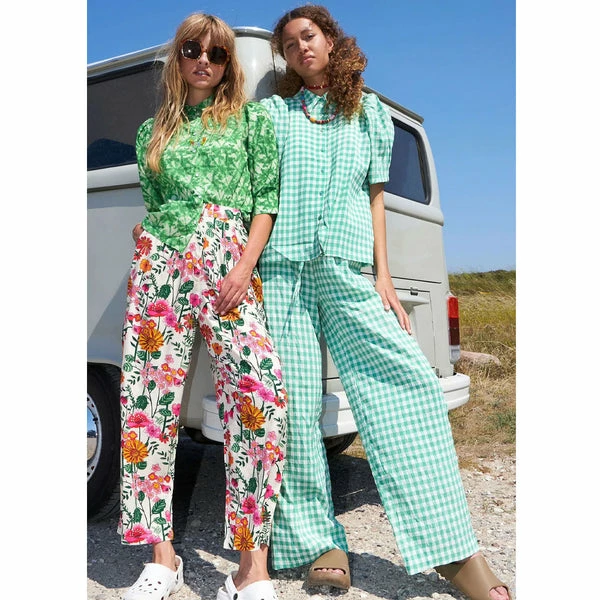These pants have a cool casual look with a long length and wide fit. Style them with a basic t-shirt and sneakers for a relaxed and comfortable outfit. They have side pockets and an elasticated waist with drawstring. The material is soft and light in a great shade of green. MEASUREMENTS: XS: Waist 64 cm / Length 78.6 cm S: Waist 68 cm / Length 78.8 cm M: Waist 72 cm / Length 79 cm L: Waist 76 cm / Length 79.2 cm XL: Waist 80 cm / Length 79.4 cm Style no. 22155_5025 Quality: 80% Polyester, 20% Viscose
