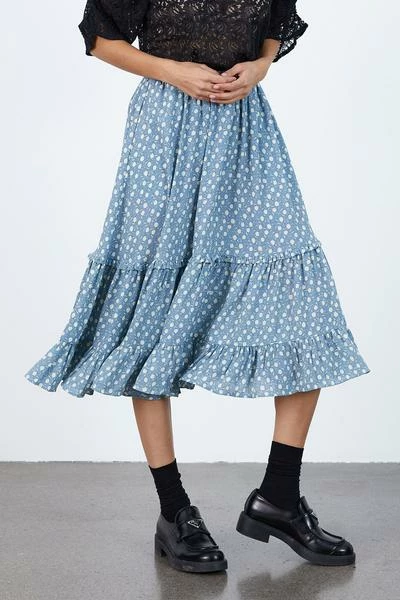 This amazing and very usable skirt is designed in a regular fit at waist and a voluminous skirt with frill details. We love the pockets in the sides, for the possibility to wear it more casual. Style it with any top and the skirt in a beautiful print will complete the outfit. Quality: 100% Polyester