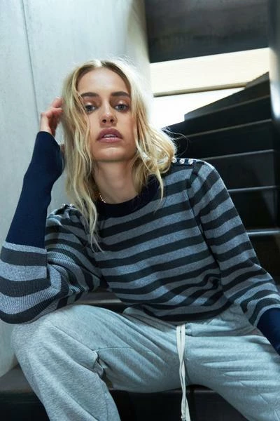 This jumper is designed in a super cool fit with details. The sleeves are long with a long, tight cuff which gives more volume at shoulders. It has a round neckline and ribbed details at top and bottom. The fit is regular. Quality: 60% Acrylic, 30 % Cotton, 10% Nylon