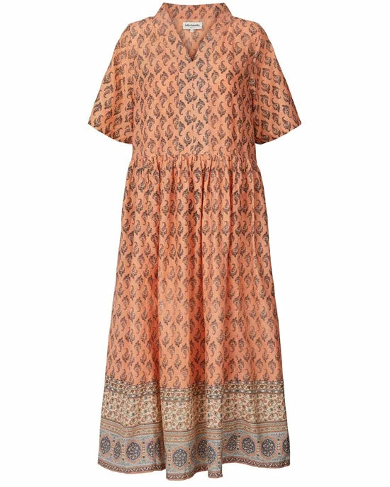 The Sumia dress from Lollys Laundry is designed with short sleeves, a v-neckline and a longer, spacious skirt. There is a detachable band at the waist and handy pockets at the sides. XS: Chest 96 cm / Length 128 cm S: Chest 100 cm / Length 129 cm M: Chest 104 cm / Length 130 cm L: Chest 108 cm / Length 131 cm XL: Chest 112 cm / Length 132 cm 100% Cotton / Lining: 100% Cotton Browse our complete Lollys Laundry collection Kamilla Byriel is the woman behind Lollys Laundry. She is a renowned Danish designer, who has already left her mark on other Danish brands. In 2007 Kamilla launched Lollys Laundry, where she creates the styles, that she loves – always with a focus on ”Easy to wear with casual coolness”.