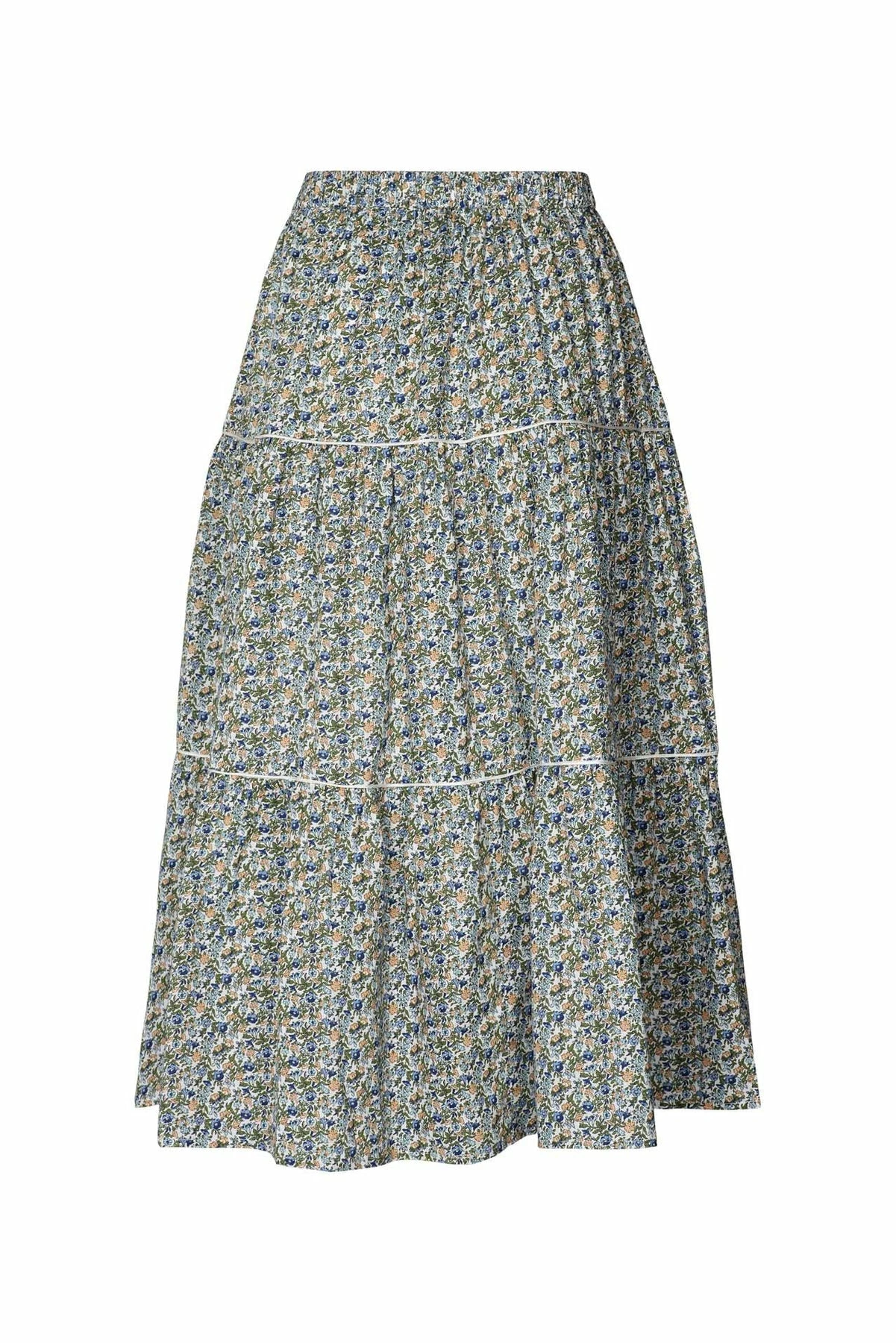 Gorgeous boho midi skirt consisting of 3-panels with gatherings, elastic at waist and lots of volume. It should be styled at the waist and has a normal to small fit. MEASUREMENTS:XS: Waist relaxed 58 cm / Waist stretched 108 cm / Length 98 cmS: Waist relaxed 62 cm / Waist stretched 112 cm / Length 99 cmM: Waist relaxed 66 cm / Waist stretched 116 cm / Length 100 cmL: Waist relaxed 70 cm / Waist stretched 120 cm / Length 101 cmXL: Waist relaxed 74 cm / Waist stretched 124 cm / Length 102 cm 100% Cotton