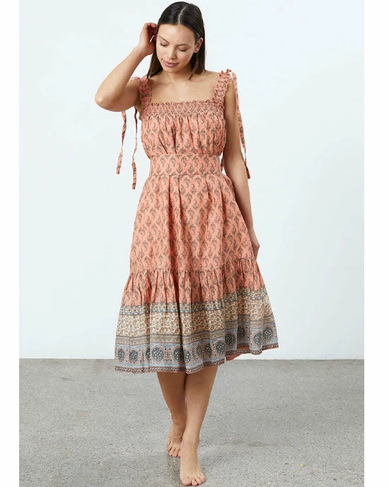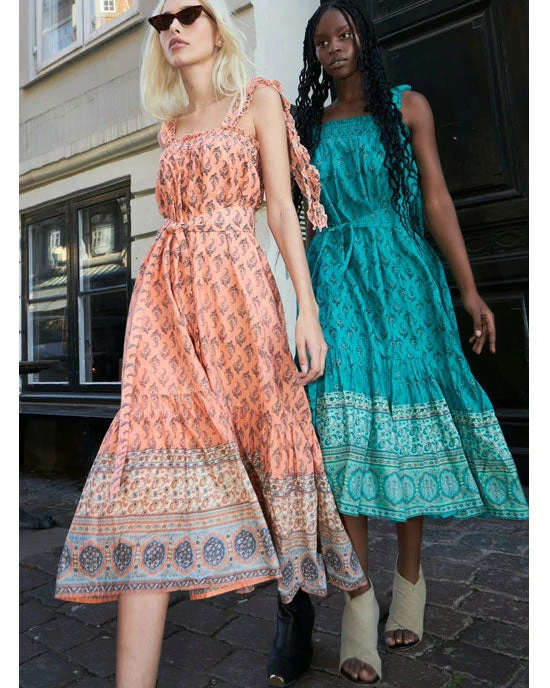 The Tabitha dress is a new feminine and summery piece with narrow and adjustable straps that are tied at the shoulders. The dress is designed with a tiered skirt, a smock above the chest and a detachable belt, creating a flattering and airy look. 100% Cotton / Lining: 100% Cotton Browse our complete Lollys Laundry collection Kamilla Byriel is the woman behind Lollys Laundry. She is a renowned Danish designer, who has already left her mark on other Danish brands. In 2007 Kamilla launched Lollys Laundry, where she creates the styles, that she loves – always with a focus on ”Easy to wear with casual coolness”.