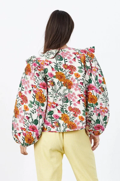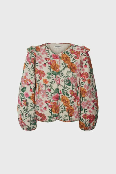 Lollys Laundry Ulla Jacket – Flower Print This short and quilted jacket will spice up your outfit. The jacket has a front placket opening with buttons and round neckline. It features long voluminous sleeves and frill details on shoulder. Perfect as a transitional style through the seasons. MEASUREMENTS: XS: Chest 94 cm / Length 57 cm S: Chest 98 cm / Length 58 cm M: Chest 102 cm / Length 59 cm L: Chest 106 cm / Length 60 cm XL: Chest 110 cm / Length 61cm Material: 100% Viscose / Lining: 100% Viscose