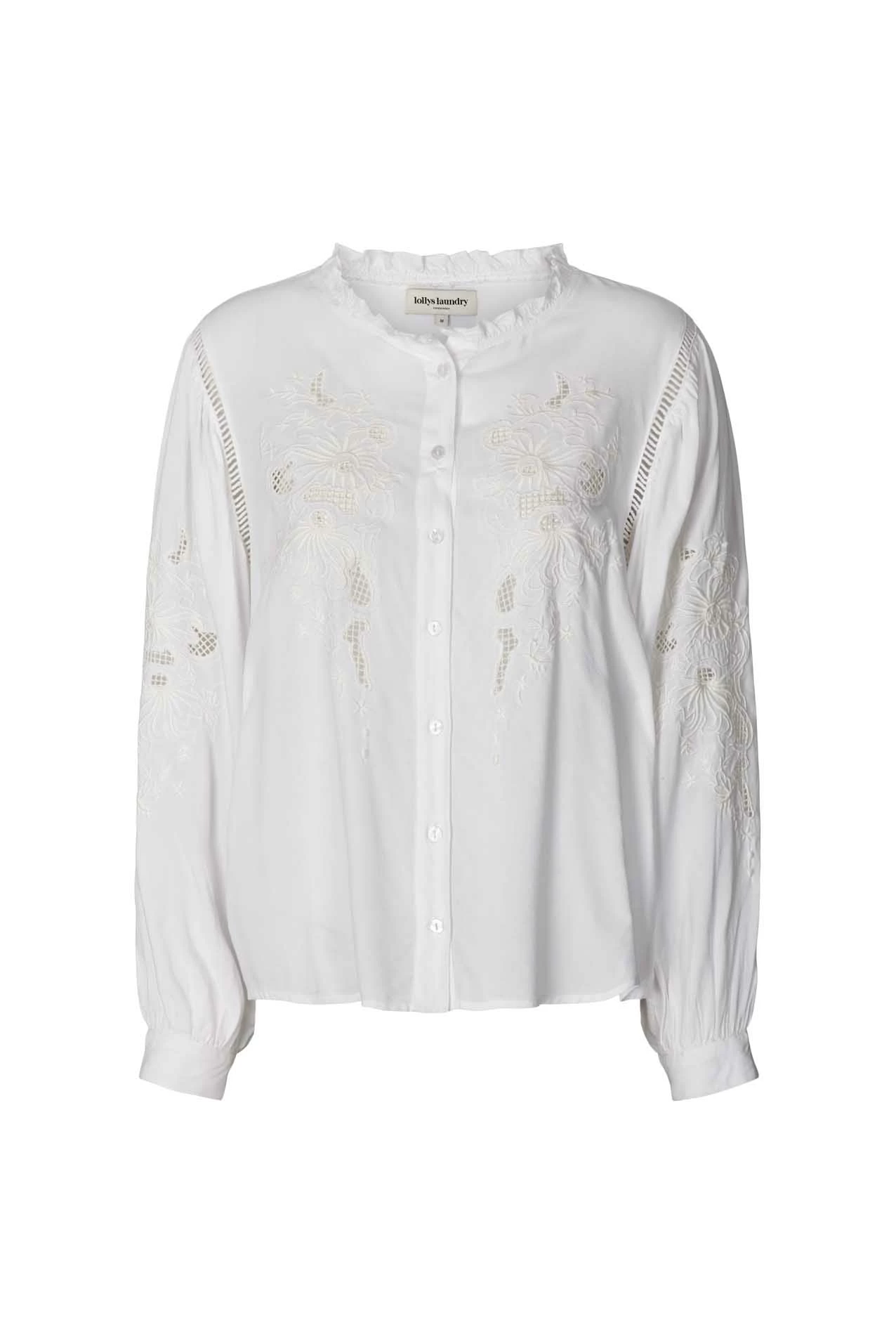 Lollys Laundry VALENTINA EMBROIDERED BALLOON SLEEVE WHITE SHIIRT