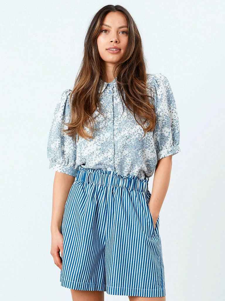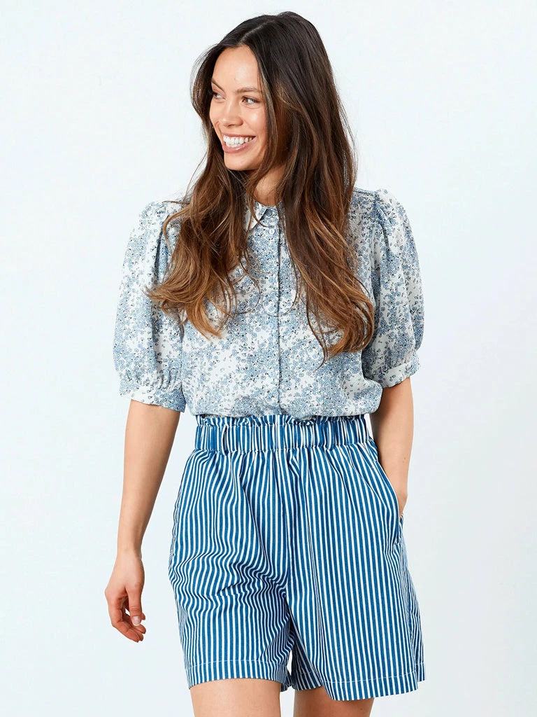 The Zoe Shirt from Lolly’s Laundry is crafted in a delicate petal pattern, with short sleeves and a front button placket. Featuring a turn-down collar and pretty puff sleeve to the elbow, this shirt offers a relaxed fit and an easy wear. 97% Polyester, 3% Spandex Short sleeve shirt with delicate petal pattern and puffed sleeves to elbow Front button placket Turn down collar
