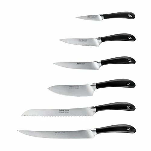 Knife block set from the multi-award winning Signature range. Includes 6 of the most popular. Signature kitchen knives. Integrated ceramic wheel knife sharpener. Comes with a 25 year guarantee.