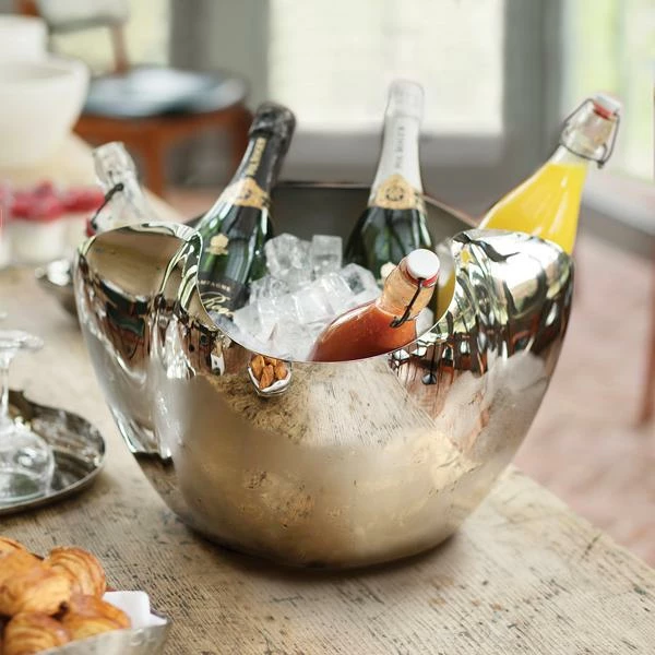 The Drift Champagne/Wine Bucket is generously proportioned to enable ice to fully surround the bottles within. Its highly polished surface and undulating shape of the body offers dramatic light reflections for a truly distinctive centrepiece.