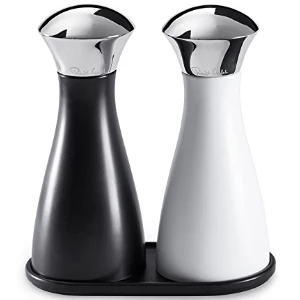 Set of Robert Welch Signature medium salt and pepper mills with a handy tray. Comes with a 25 year guarantee. Consists of Signature Medium Salt Mill White (1), Signature Medium Pepper Mill Black (1), Tray (1).