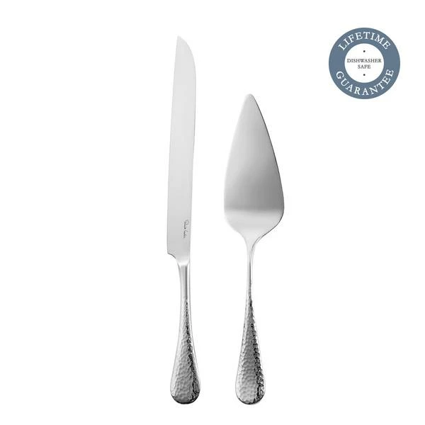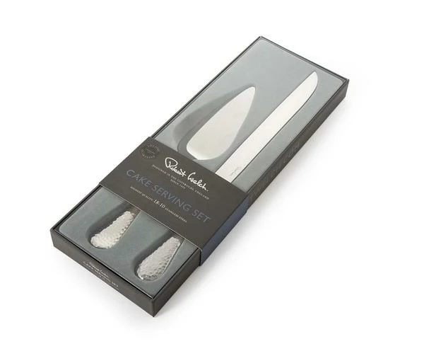 Honeybourne is a versatile design, suitable for the modern and traditional home alike. Classically proportioned with a traditional heel, the handles feature a textured finish, inspired by the silversmith technique of round hammer planishing. The gift boxed Cake Serving Set offers an elegant way to serve desserts and cakes and is an ideal gift or wedding present. The cake server is made using the highest quality 18/10 stainless steel. Knife blades are made from specially hardened stainless steel to provide the finest possible cutting edge. This set has a lifetime guarantee and is dishwasher safe. This product cannot be sold to any person under the age of 18.