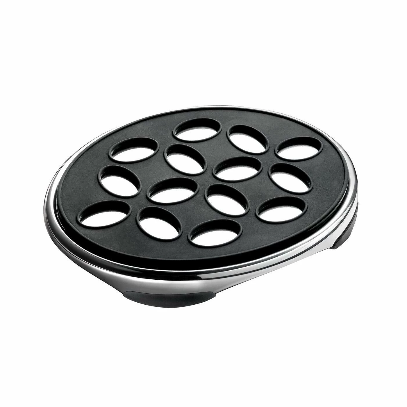 The Signature oval trivet is ideal for use with hot pans in the kitchen and for serving dishes at the table. Made from polished stainless steel with a removable silicone mat, heat resistant up to 280C/536F. Gift boxed. Part of the Signature kitchen collection which includes kitchen knives, scissors, utensils, kitchen accessories, kitchen storage and textiles. DIMENSIONS Height: 30mm Width: 250mm